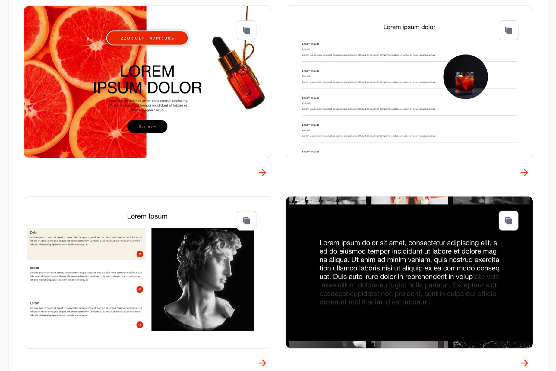 Create or redesign a Squarespace site in a fraction of the usual time. Add each section in just a few clicks, not hours.